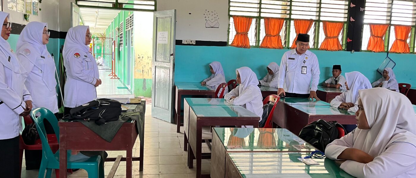 Kakankemenag Labuhanbatu Utara Agus Priadi, S.Ag, M.Si memantau secara langsung pelaksanaan ujian madrasah di MTsN 2 Labuhanbatu Utara.
