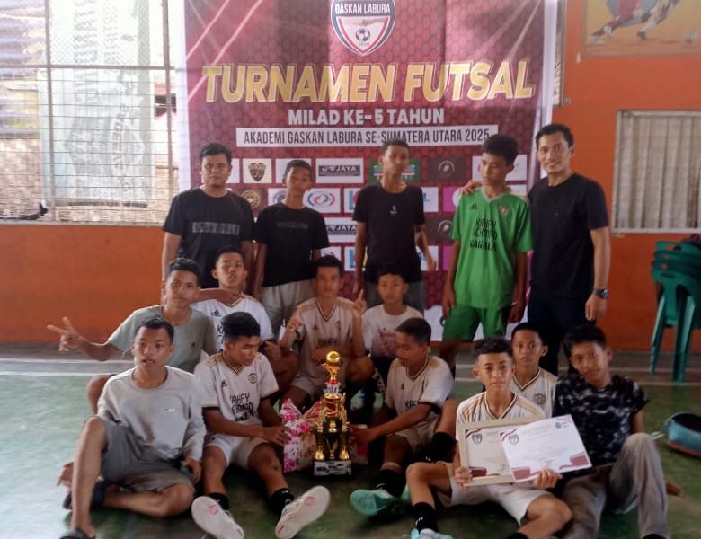 Membanggakan, Tim Futsal MTsN Labura Raih Juara I Turnamen Futsal Milad Ke-5 Tahun Akademi Gaskan Labura Se-sumatera Utara