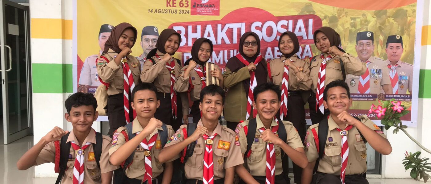 MTsN 2 Labura Mengikuti Bakti Sosial Menyambut HUT Pramuka Labura Ke-63 di Puskesmas Gunting Saga
